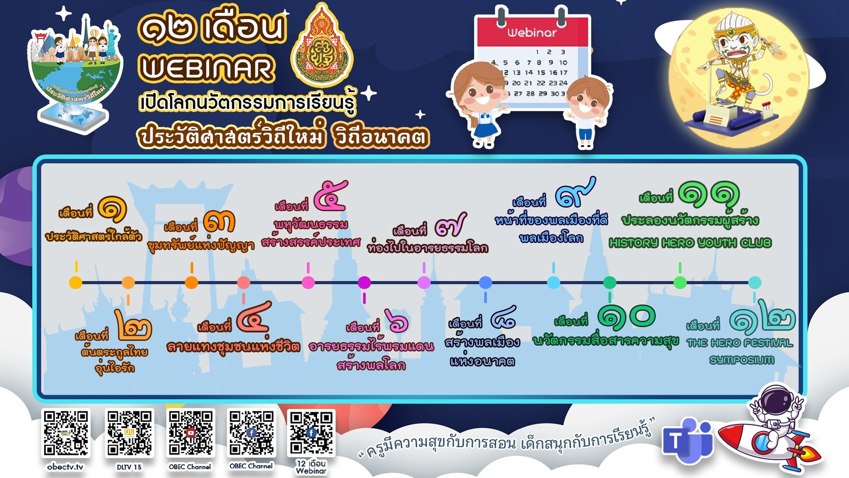ติดตามความเคลื่อนไหว ร่วมสนุกกับเกมและกิจกรรมมากมาย รวมถึงรับชม Facebook Live และกิจกรรมย้อนหลังได้ที่ FACEBOOK Fans Page "12 เดือน Webinar เปิดโลกนวัตกรรมการเรียนรู้ประวัติศาสตร์วิถีใหม่ วิถีอนาคต"